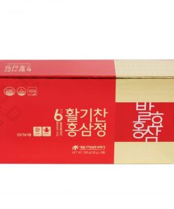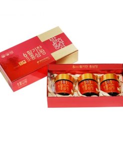 2. Thành phần: Thành phần trong lọ 100g: Cao hồng sâm cô đặc 6 năm tuổi [ thành phần rắn 60%, hàm lượng (Rg1, Rb1, Rg3 7mg/g)] chiếm10%, Cao Hồng sâm lên men 6 năm tuổi [ Thành phần rắn 60%, hàm lượng (Rg1, Rb1, Rg3 4mg/g)] chiếm 10%, tỷ lệ pha trộn nguyên liệu 70 rễ chính 30% rễ phụ. Fructooligosacarit, hỗn hợp thảo dược hồng sâm HongJungwon (oligosacarit, chiết xuất hồng sâm, mật ong), Polydextrose, Nước tinh khiết, công thức pha trộn Maltodextrin, hỗn hợp thảo dược cô đặc (nấm linh chi, cam thảo, địa hoàng, đỗ trọng, trần bì, hoa mẫu đơn, long nhãn, quế, Hà thủ ô, Phúc bồn tử, hoàng kỳ, sắn dây).